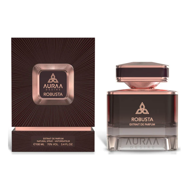 Auraa Desire Robusta Extrait De Parfum es una fragancia de lujo que fusiona de manera excepcional la frescura cítrica con la calidez de las maderas y las flores. Su composición, a la vez vibrante y envolvente, evoca una sensación de poder y sofisticación, haciendo de cada momento una experiencia sensorial única.