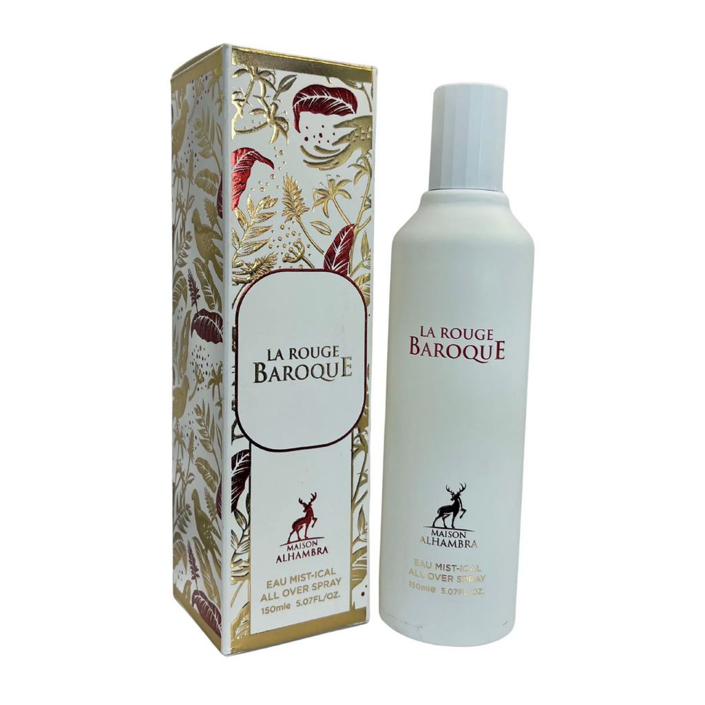 Maison Alhambra La Rouge Baroque EAU Mist-Ical All Over Perfume Spray 150ml Unisex es una fragancia envolvente y lujosa, ideal para aquellos que buscan una mezcla de sofisticación y misterio. Su apertura fresca y cítrica evoluciona hacia un corazón floral y elegante, mientras que su fondo amaderado y cálido deja una estela inolvidable.