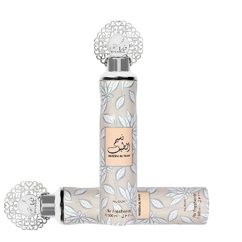 Nusuk Naseem Al Tayif Air Freshener es una fragancia que evoca elegancia y delicadeza, envolviendo los espacios con un aire floral y cálido. Su combinación armoniosa crea una atmósfera suave y sofisticada.