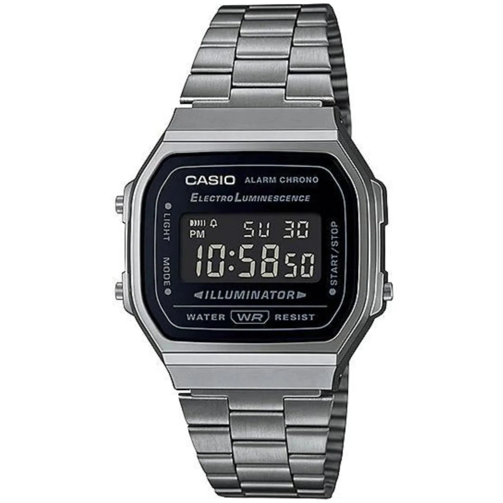 No busques más! El Reloj Casio A-168WGG-1B es una pieza vintage y a la vez moderna para todas las edades. Su hermoso color gráfito se verá increíble en tu muñeca y su correa ajustable se adapta a cualquier tamaño. ¡Adiós a aburridos relojes!