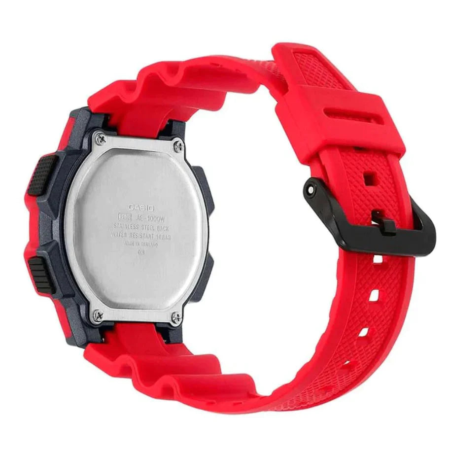 El Reloj Casio AE-1000W-4AV para Hombre es el accesorio perfecto para los aventureros y deportistas. Presenta un diseño deportivo con un toque de color rojo y cuenta con la función de hora mundial para facilitar tus viajes. ¡No te pierdas ni un segundo de tus aventuras con este reloj funcional y llamativo!