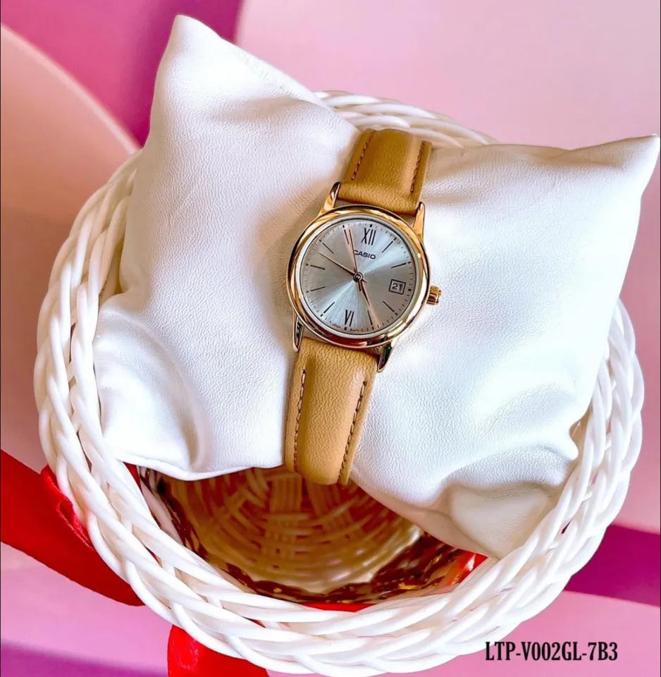¡Luce elegante y divertida con el Reloj Casio LTP-V002GL-7B3 para mujeres! Con su correa de cuero café claro, fondo gris, números romanos y función de fecha, ¡este reloj te mantendrá puntual y con estilo todos los días! ¡No pierdas la oportunidad de tenerlo en tu colección!
