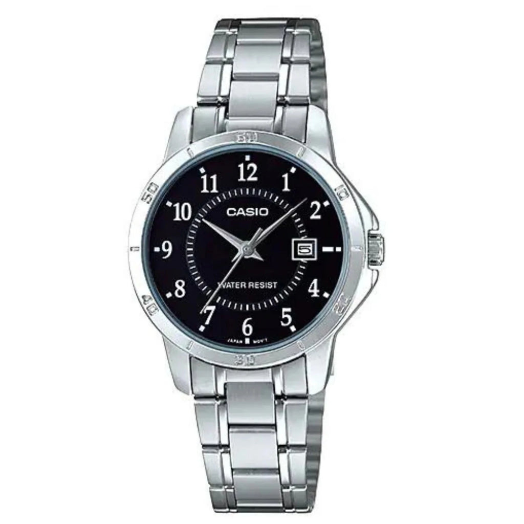 ¡Este reloj te hará lucir elegante y puntual! Con una correa de acero inoxidable plateado y un fondo negro, este reloj análogo para mujeres cuenta con números del 1 al 12 y fecha para facilitar la lectura del tiempo. ¡Siempre estarás al tanto con estilo!