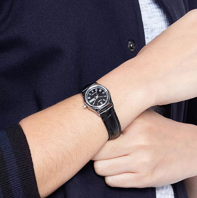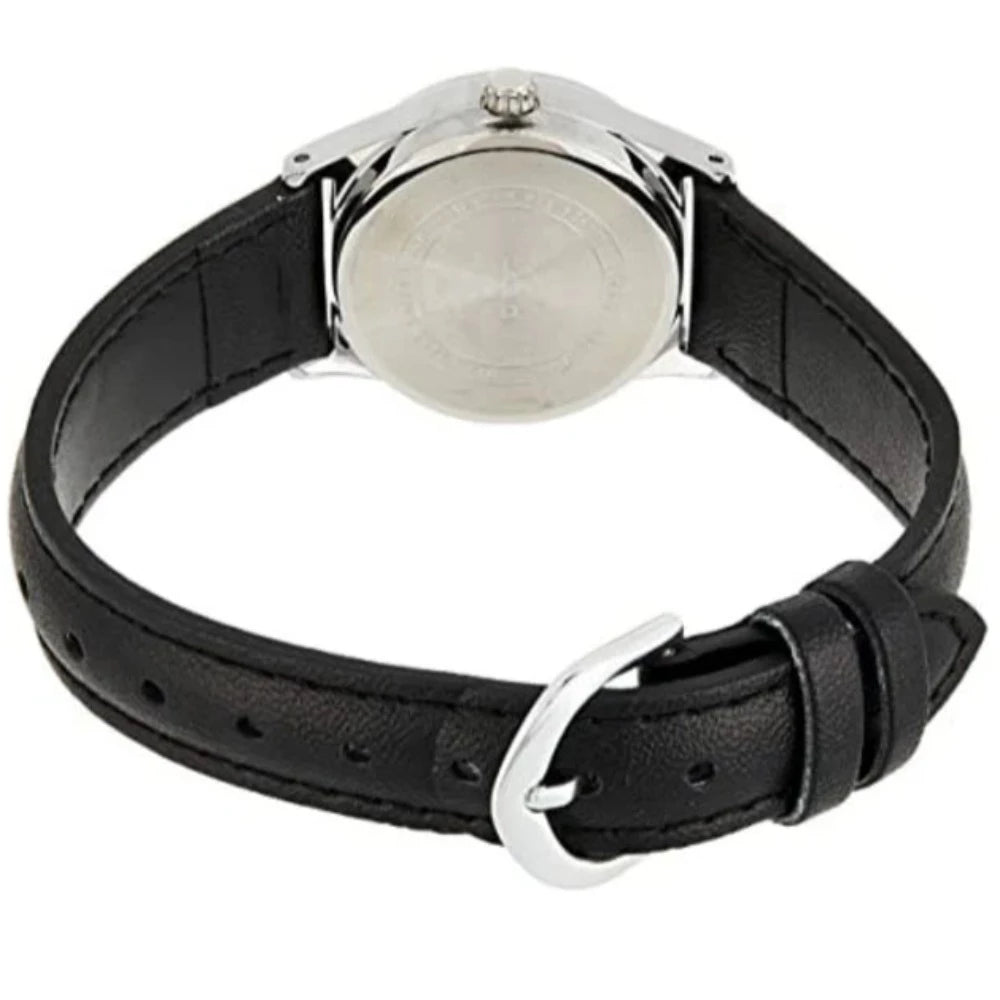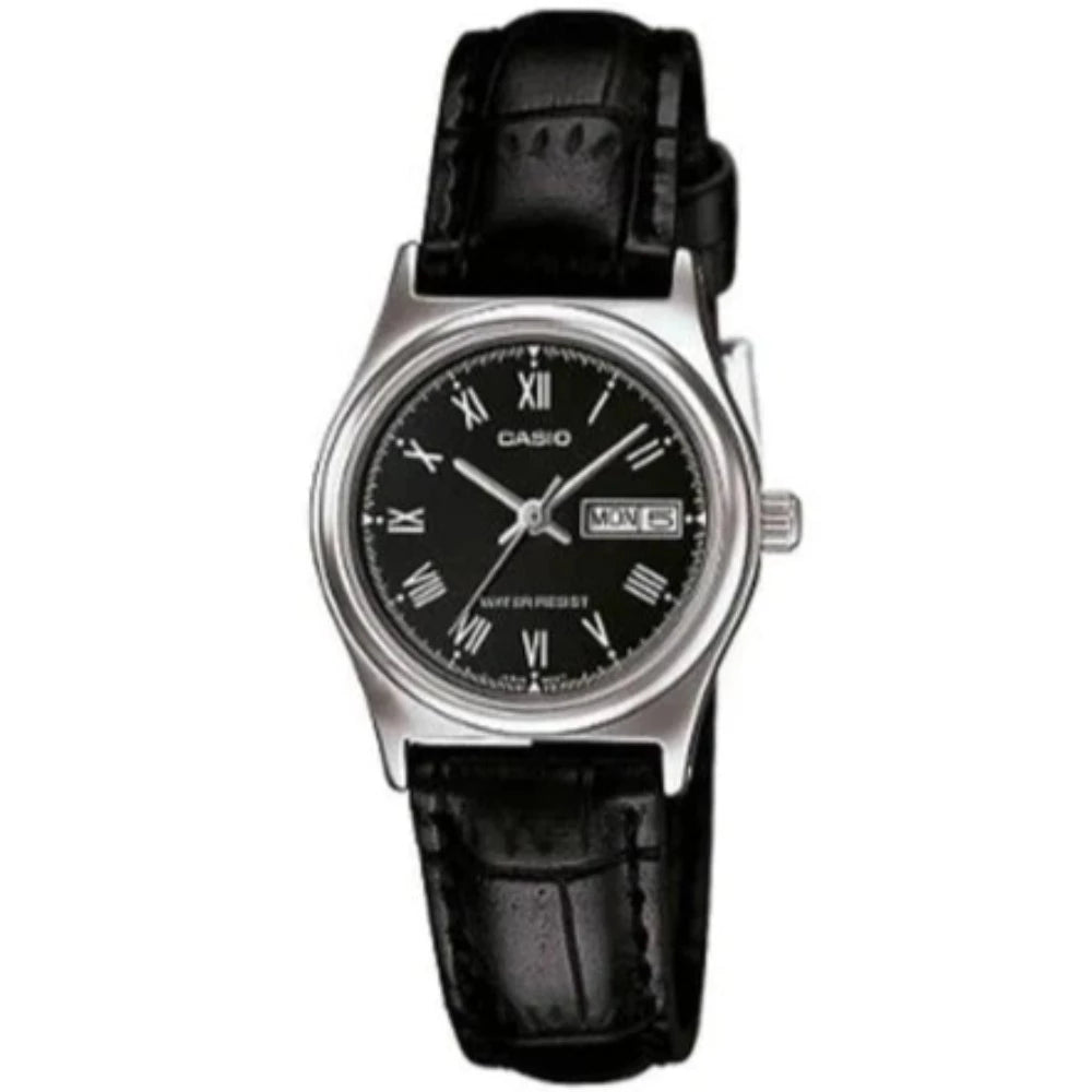 ¡Con el Reloj Casio LTP-V006L-1B para mujer, estarás siempre a la moda! Su correa de cuero negro y bisel plateado le dan un toque elegante, mientras que su diseño clásico con números romanos y función de fecha lo hacen moderno y práctico. ¡Un accesorio perfecto para seguir las tendencias con estilo!
