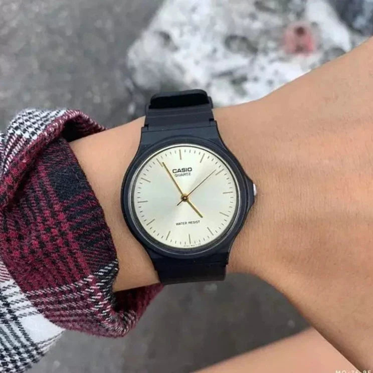 ¡Llegó el reloj que te faltaba! El Reloj Casio MQ-24-9E Unisex te ofrece un estilo simple y minimalista, con un fondo dorado que le da un toque de elegancia. Olvídate de los números, su máquina confiable te dará la hora exacta cada día. ¡No esperes más para tenerlo en tu colección!