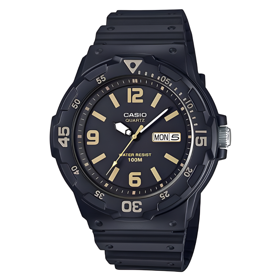 ¡El reloj Casio MRW-200H-1B3V es perfecto para el hombre deportivo y casual! Sus números 6, 9 y 12 le dan un toque clásico, mientras que la función de fecha lo hace práctico. Además, ¡es resistente al agua para que puedas llevarlo a todas partes sin preocupaciones!
