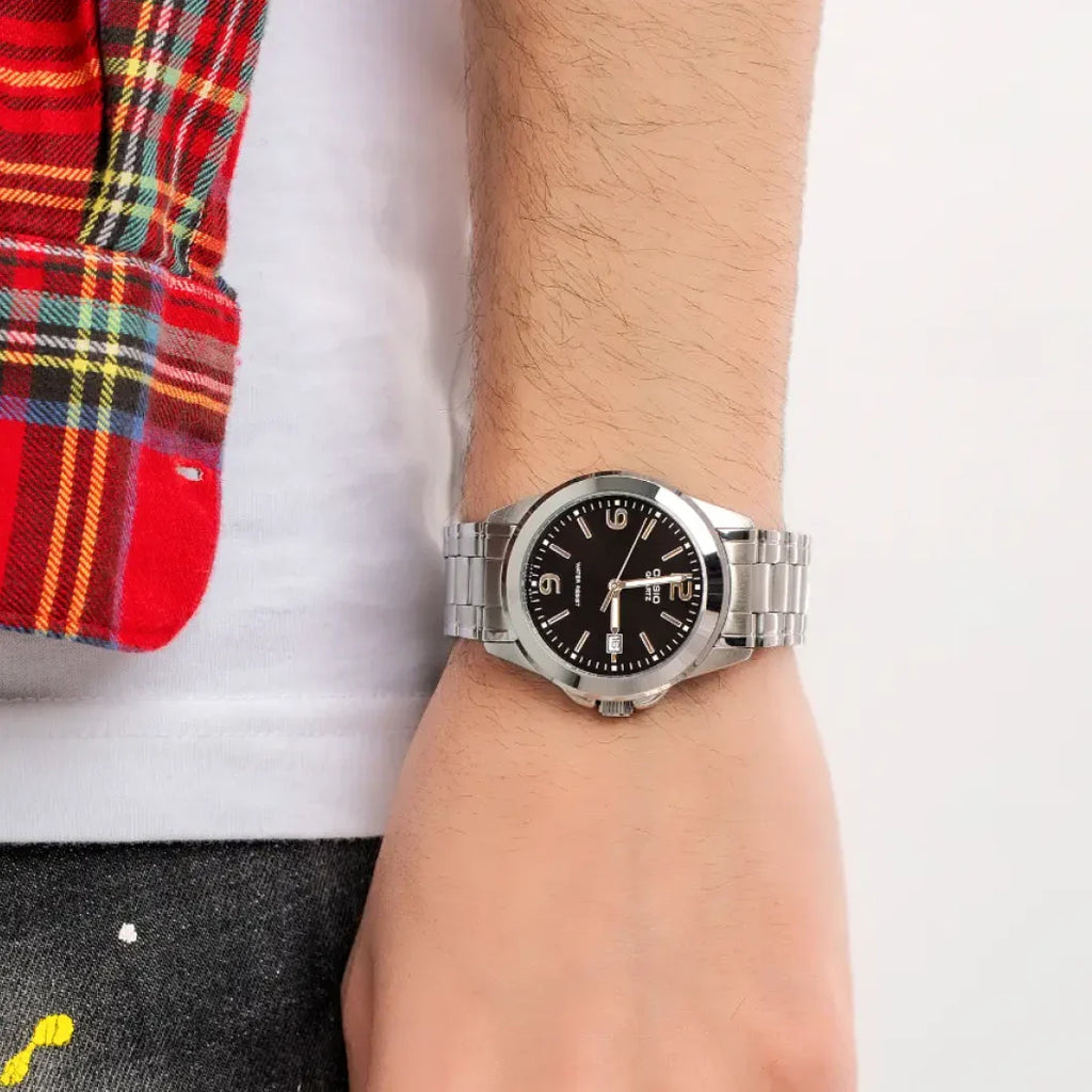 ¡El reloj Casio MTP-1215A-1A es perfecto para un hombre elegante y formal! Con una correa de acero resistente y un fondo negro clásico, este reloj es ideal para cualquier ocasión. Además, su función de fecha te ayuda a mantenerte siempre puntual. ¡Haz una declaración de estilo con este reloj análogo!