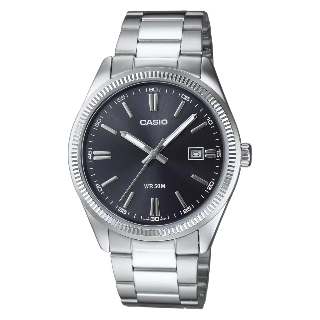 Este reloj Casio MTP-1302D-1A1V para hombre es elegante y casual, perfecto para cualquier ocasión. Cuenta con un fondo negro y una correa de acero que lo hace duradero y resistente. ¡No pierdas más tiempo y añádelo a tu colección!