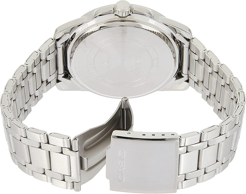 ¡A tiempo y con estilo! El Reloj Casio MTP-1314D-7AV tiene una correa de acero y detalles negros que lo hacen hermoso y lujoso. Con números 3 6 9 y 12, además de la fecha, ¡es perfecto para ocasiones formales!