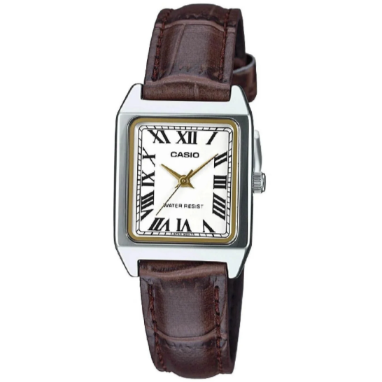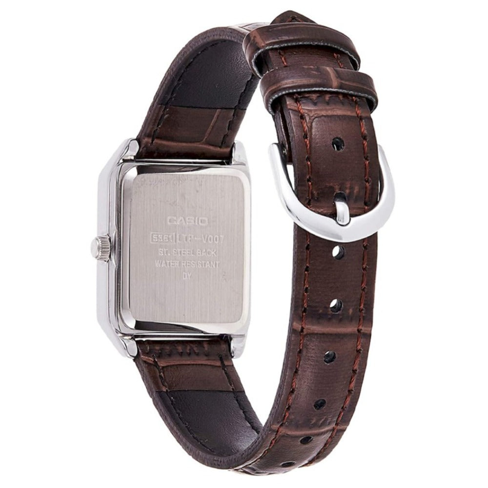 ¡Con este reloj Casio Tank LTP-V007L-7B2 para mujer, estarás siempre elegante y puntual! Su correa de cuero café y bisel con detalle dorado le dan un toque sofisticado, mientras que sus números romanos añaden un toque clásico. ¡No pierdas la oportunidad de adquirir este reloj analógico!
