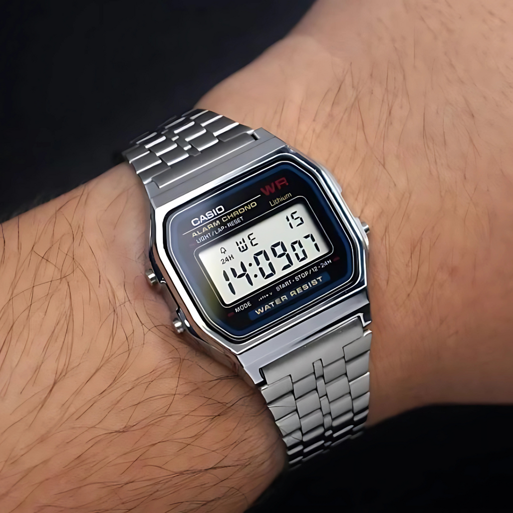 ¡Echa un vistazo al reloj A-159WA-1 de Casio! Con su apariencia clásica y vintage, este reloj plateado es ideal para todo momento. ¡Brillante para salir con los amigos y a la moda para los días de oficina! Invierte en este divino reloj unisex, ¡y sácale el máximo partido!